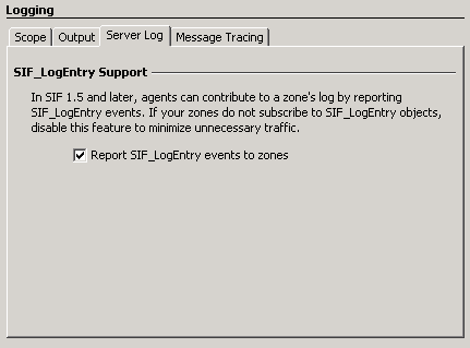 The Logging > Server Log provides the option of reporting SIF_LogEntry events to zones.