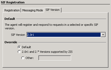 Override: The override setting allows the Agent to register itself in a selected version of SIF, responding only to requests specific to the override setting while still publishing events in the selected "Default" SIF version.