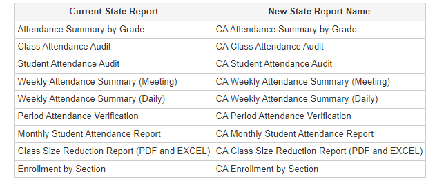 PSSR-210527 | CA - State Specific Reports Rename | The following reports are renamed to differentiate from identically named system reports: ![]() |