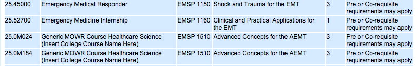 Move On When Ready Course Numbers