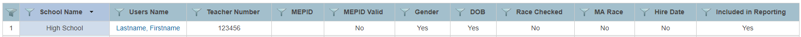 Each field that contains a value of No needs to be fixed for the student's data to publish. Once the data is fixed, click Clear Cache to see the updated results.