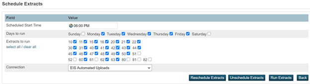 5: Select the Days to run that the extract processes should run on